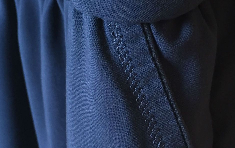 Elegant en toch een beetje stoer, met een wijdvallende top en een broek die onderaan mooi aan het been aansluit. Ik zag het al helemaal voor mij: gecombineerd met een glittertopje en met zilveren sandaaltjes eronder, zag ik mij deze zomer al furore maken op talloze tuinfeestjes of zelfs op een trouwfeest. Eerder casual zou ik hem dan combineren met een mooi paar sneakers en een sportief topje. Ik koos voor een soepele blauwe viscose, eveneens uit Veritas, en ging vol enthousiasme aan de slag.