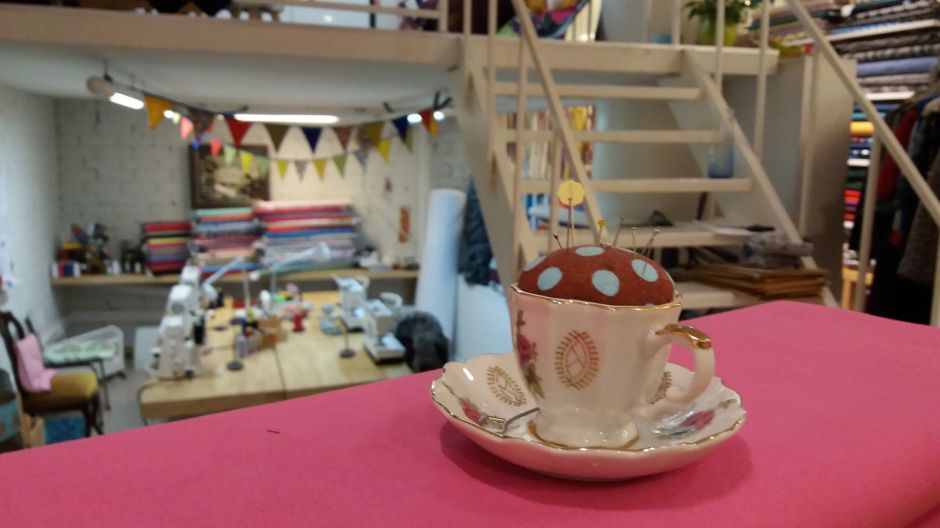 Eigenares Els startte Stitch and Co twee jaar geleden op, samen met haar moeder en nichtje. Na jaren te hebben gewerkt in het modegebeuren en de stoffenwereld, besloot ze haar droomproject op te bouwen. Je kan er stoffen en fournituren kopen, maar de winkel is ook een naaicafé, waar je zowel de naai- als lockmachines kunt gebruiken. Niet alleen zijn er regelmatig workshops, de winkel wordt ook druk bezocht door naaisters die even wat raad nodig hebben. Ik heb het er eigenlijk nog nooit leeg geweten.