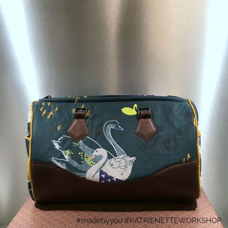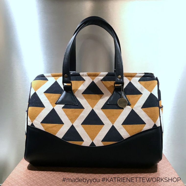 Altijd leuk als de Girls afspreken. Naaien voor een goed doel, een stoffenuitstapje… als het maar met naaien te maken heeft en gezellig wordt. Voor ons laatste uitje besloten we onze eerste stappen te zetten in het tassen maken. Nu ja, eerste stappen… ik had al eens een etui gemaakt en testte de Stinger mee uit. En Lieve… Lieve maakte al genoeg tassen om een eigen boetiek te beginnen. Maar An en Tatiana waren onbekend in tassenland. Een Katrienette’s workshop Blanche, een schattige barrel bag met (kurk)lederen details, zou daar verandering in brengen.