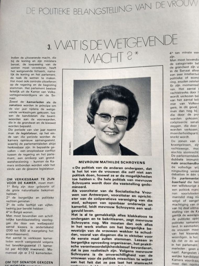 Blijkbaar bestond ‘ons rijk’ toen vooral uit reclames voor wasmiddelen, witgoed en make-up, waslijsten met recepten, kledingpatronen voor vrouw en kinderen en het occasioneel artikel waarin ze de vrouw uitlegden wat de wetgevende macht feitelijk was in België. Zonder al te veel moeilijke informatie natuurlijk. Het vervolg van het stationsromannetje mag natuurlijk niet ontbreken in beeld, foto of tekst waar de kuise hartstocht van de bladen spat. Schit-te-rend om te lezen.
