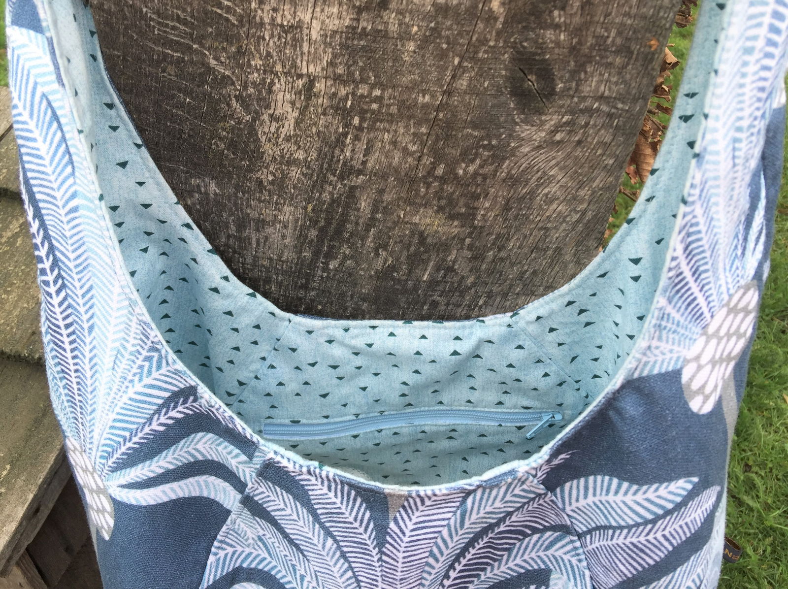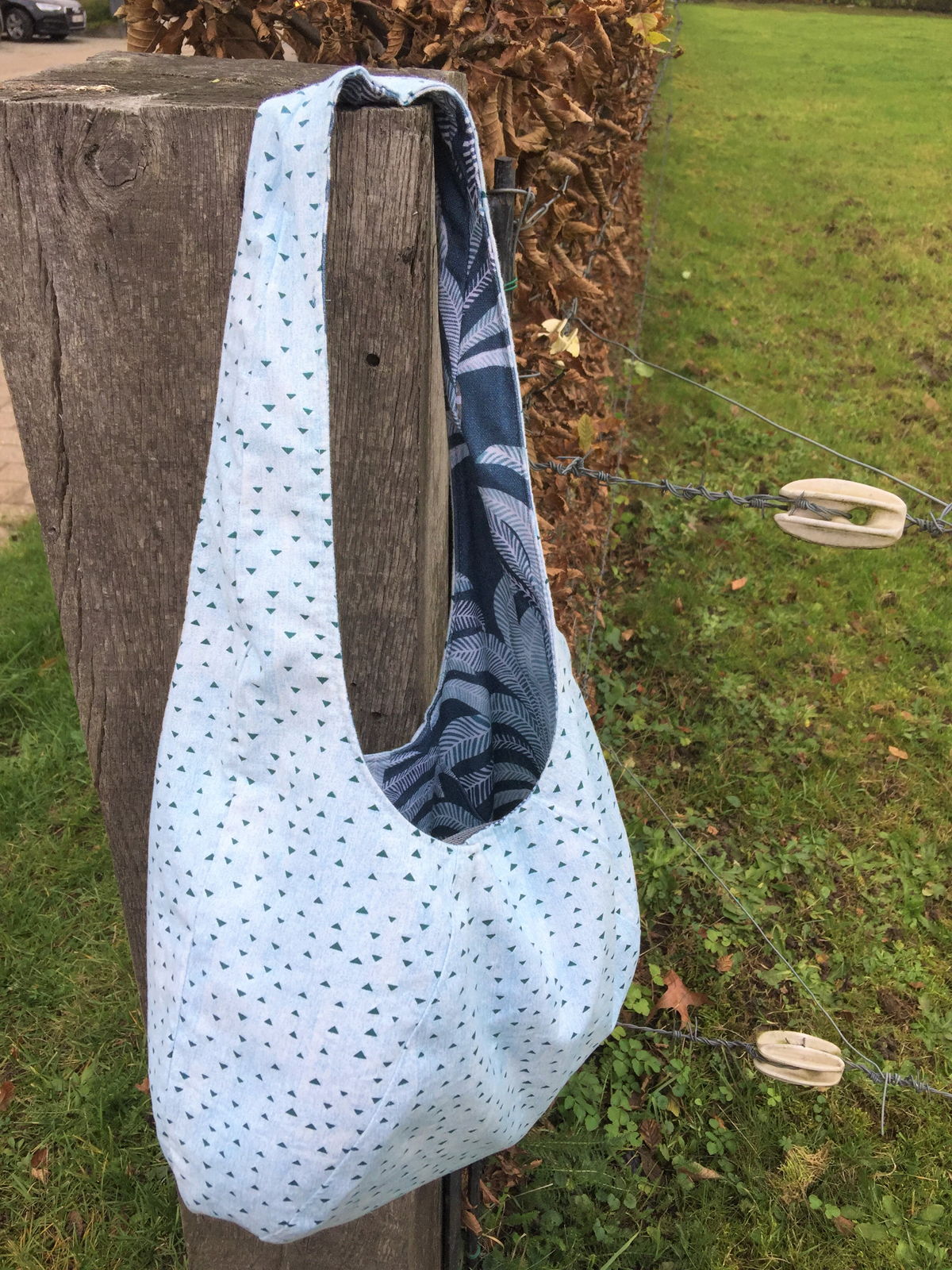 Het origineel komt met koordjes om je tas dicht te houden. Deze heb ik achterwege gelaten en ik heb er een handig ritszakje aan toegevoegd om mijn sleutels makkelijker terug te vinden of om mijn mondmasker-tasje in weg te steken. Het ritszakje laat ook toe de de tas mooier af te werken doordat je het als keergat kan gebruiken.