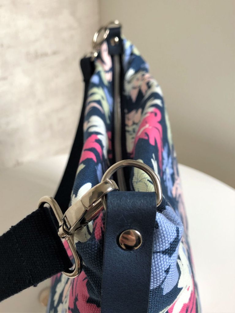 Toen het Engelse Minerva deze prachtige gebloemde canvas van ArtGallery in mijn bus dropte, ging ik op zoek naar een patroontje in mijn -intussen uitgebreide- ‘bibliotheek’. Ik wilde heel graag iets maken uit ‘Mijn Tas 2′, een van mijn favoriete tassenboeken. Ik hoopte dat de stof de hoofdrol zou spelen in de tas, want zo’n kwaliteitscanvas is te mooi een om een bijrolletje te spelen. De Anna II uit het boek leent zich perfect voor dit doel.