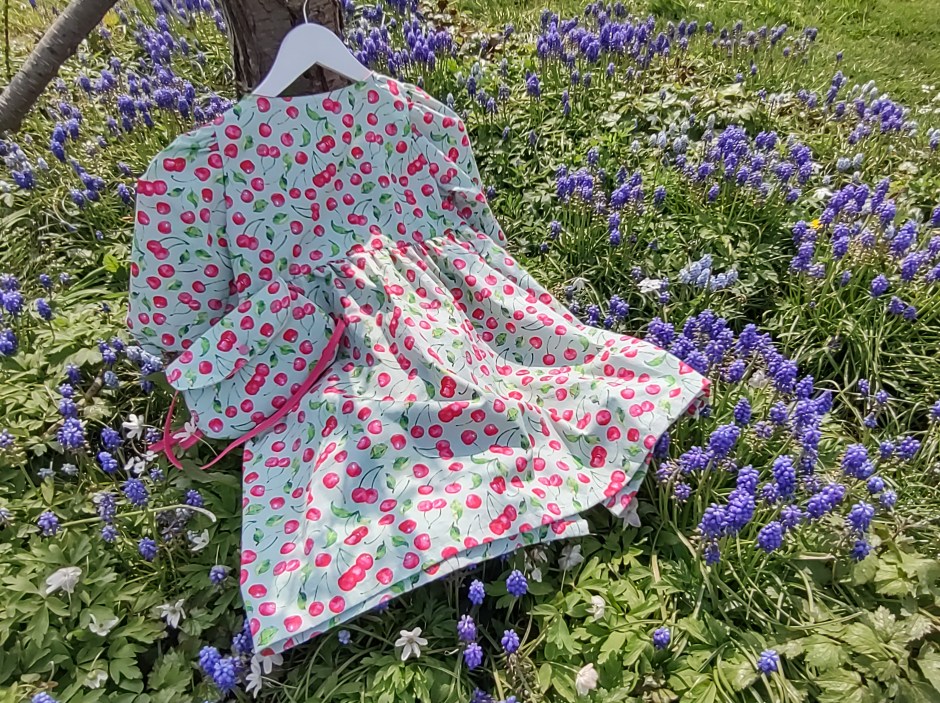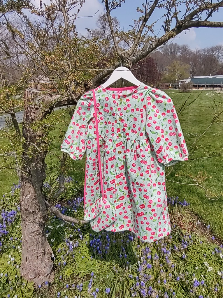 De linkparty van FibreMood kwam als geroepen want in deze editie viel mijn oog op een leuke meisjesjurk. Het schoot me te binnen dat het weer lang geleden was dat ik iets voor mijn nichtje gemaakt had. Deze Rosa jurk kon daar verandering in brengen. De jongedame draagt graag kleedjes en rokjes en haar favoriete kleuren zijn roze, paars en groen. Ze is dus een ideaal slachtoffer voor mijn naaiwoede. Mijn eerste idee was om haar te verrassen met een prinsessenkleed en dus wou ik Rosa gewoon een beetje verlengen met een korte sleep achteraan. Maar toen ik in Stitch en Co aan het rondsnuisteren was voor glitterstofjes, viel mijn oog op een print waar ik instant lentekriebels van kreeg. Groen en roze, ik werd er instant happy van. Change of plan dus. Geen prinsessenjurk maar een lentejurk. Mijn broer verzekerde me dat ze dat ook leuk zou vinden dus volgde ik braaf het patroon voor een lentekleedje.