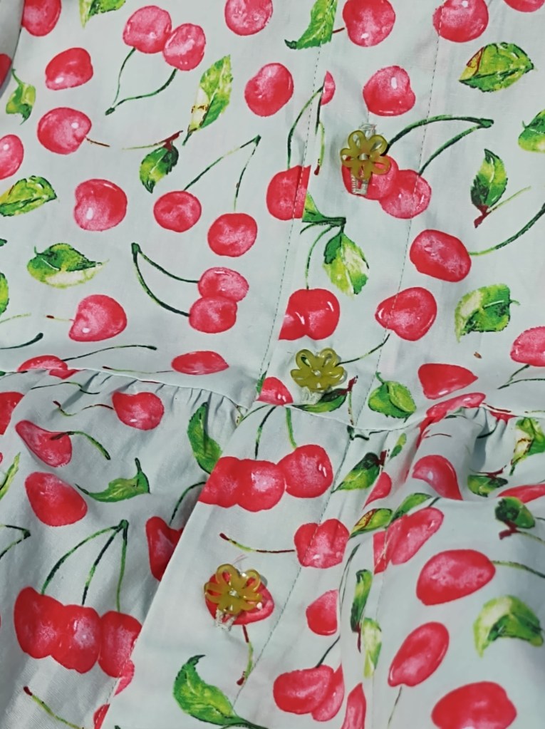 De constructie van Rosa ging vrij vlot, zelfs de kraag en de twee zakken lukten netjes (ik heb steeds de neiging om die scheef te zetten.) Het enige waar ik een beetje tegenop zag, was het fronsen aan de middel en de mouwen. Ik vind fronsen een heel gedoe om dat regelmatig te krijgen dus niet echt een techniek die ik veel gebruik. Maar eerlijk gezegd ging het vlotter dan ik me had voorgesteld, zoals bij de meeste zaken waar je je op voorhand zorgen in maakt, neem ik aan.