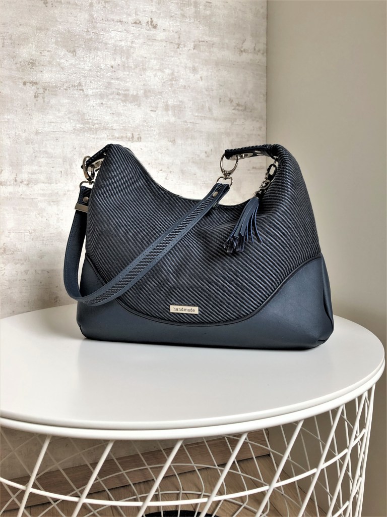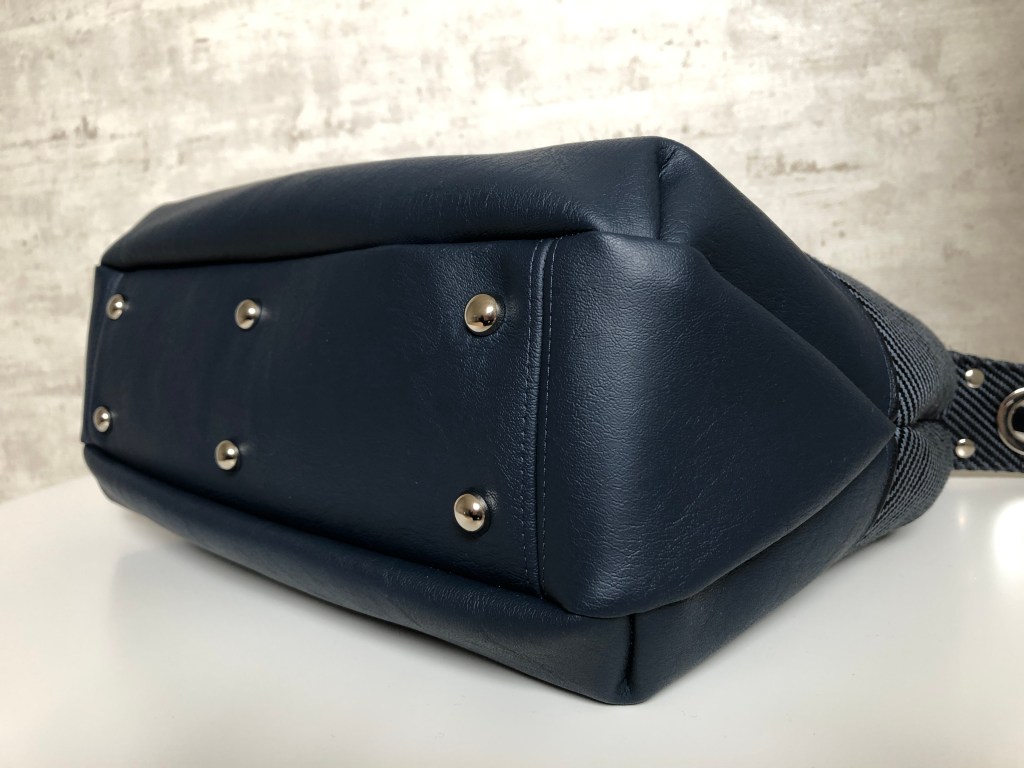 Echt waar, ik hou van elk detail van deze tas. Van het prachtige donkerblauwe kunstleer (enkel op bestelling bij Kbas), de neplederen paspel en de rits-op-rol tot de jeansblauwe voering. Ik hou ervan hoe het geheel meer is dan de som van de delen. Hoe aparte componenten op het eerste gezicht niet perfect samen horen, maar samensmelten van zodra ze aan elkaar gestikt zijn…