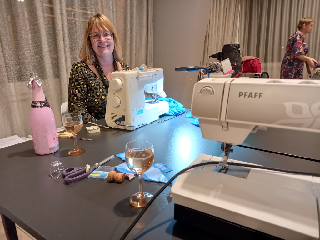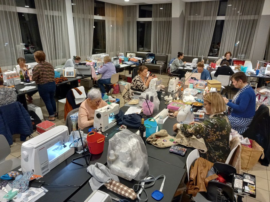 Ik hapte toe en stond vrijdagavond gepakt en gezakt in Koksijde, in een grote zaal met snorrende machines en veel rumoer van taterende dames. Jullie kennen het concept van een naaiweekend wel; je installeert je met je spulletjes… en vroemm!