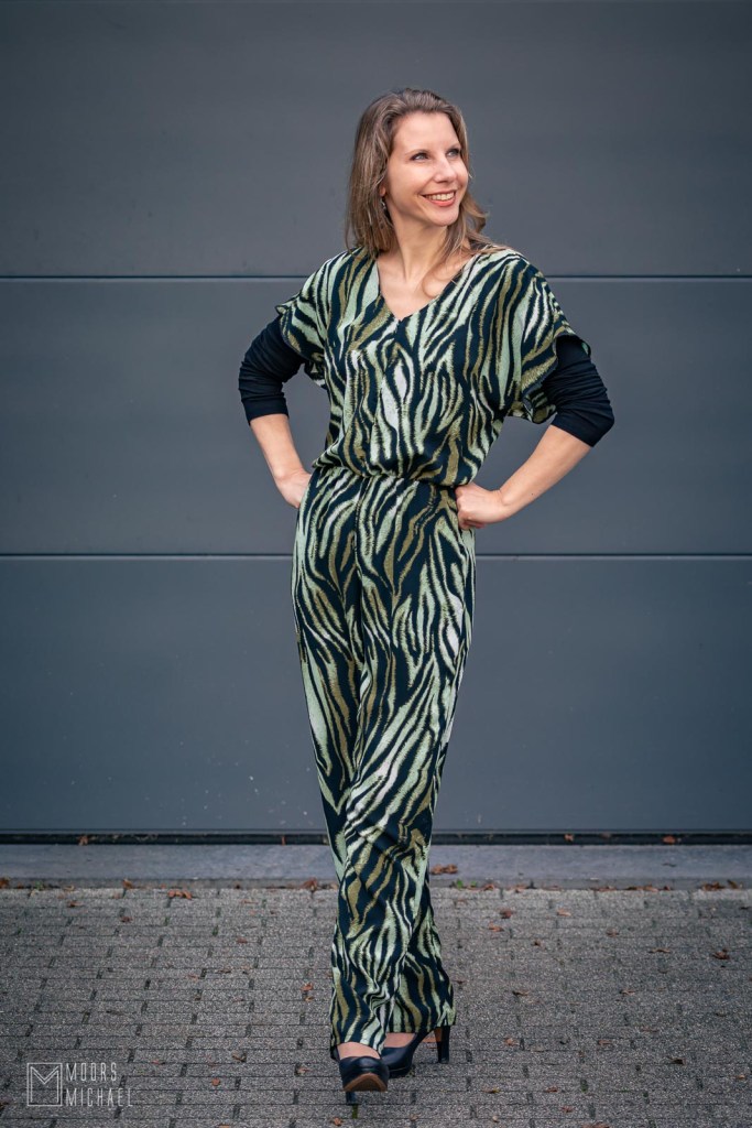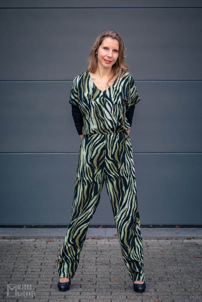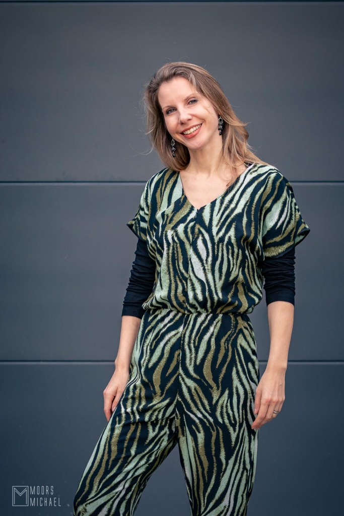 Ik naaide wel eens eerder een jumpsuit uit een van de eerste Veritas-magazines, maar dat viel mij toch een beetje tegen. De vorm was niet helemaal wat ik zocht in een jumsuit. Al stond hij mij wel en droeg ik hem meteen op een trouwfeest, na de eerste wasbeurt was hij zoveel gekrompen dat hij richting de kledingcontainer vloog. Nadien waagde ik mij heel lang niet meer aan een jumpsuit.