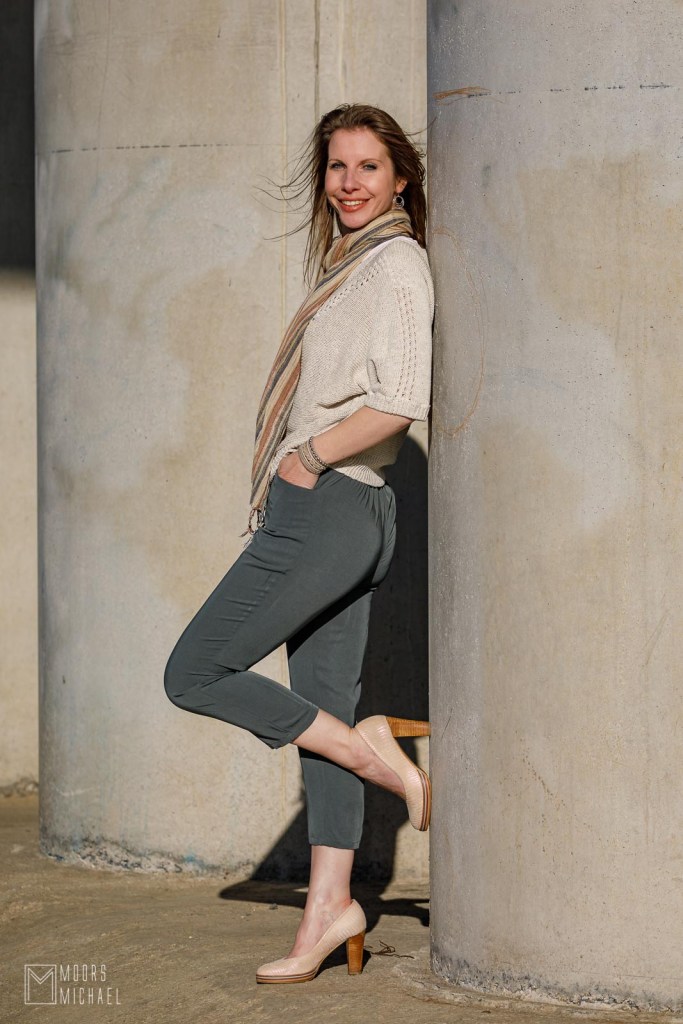 Binnen het patroon kan je kiezen voor drie opties: de rechte 7/8 broek die ik maakte, een versie met wijde pijpen tot op de grond en een shortje. Wat ik zo leuk vind aan de versie van mij, is dat mijn enkels mooi in de verf gezet worden. In de lente mag dat wel eens, niet? Maar neem het van mij aan: de twee andere broeken zijn ook heel erg leuk.