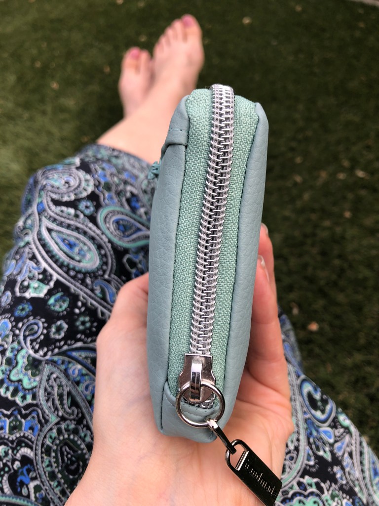 Marijke koos voor de volledige buitenkant in kunstleer, maar de Little Mynta buitenkant kan je ook in twee kleuren maken. Dat zie je binnenkort aan mijn eigen versie van de portefeuille… want mezelf kon ik natuurlijk niet uitsluiten van zoveel moois.