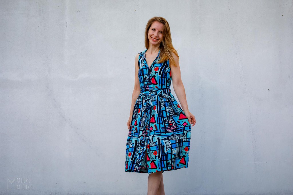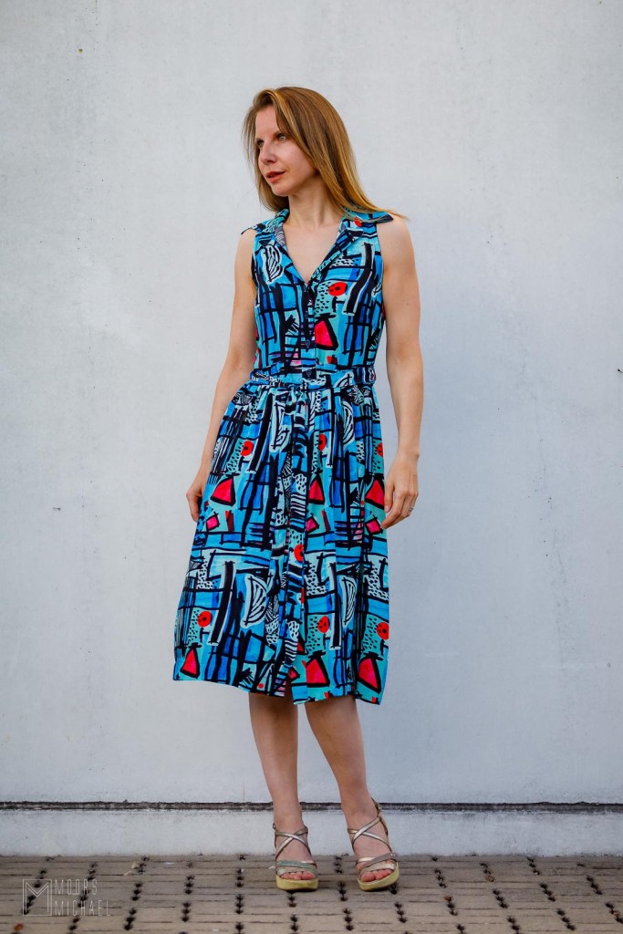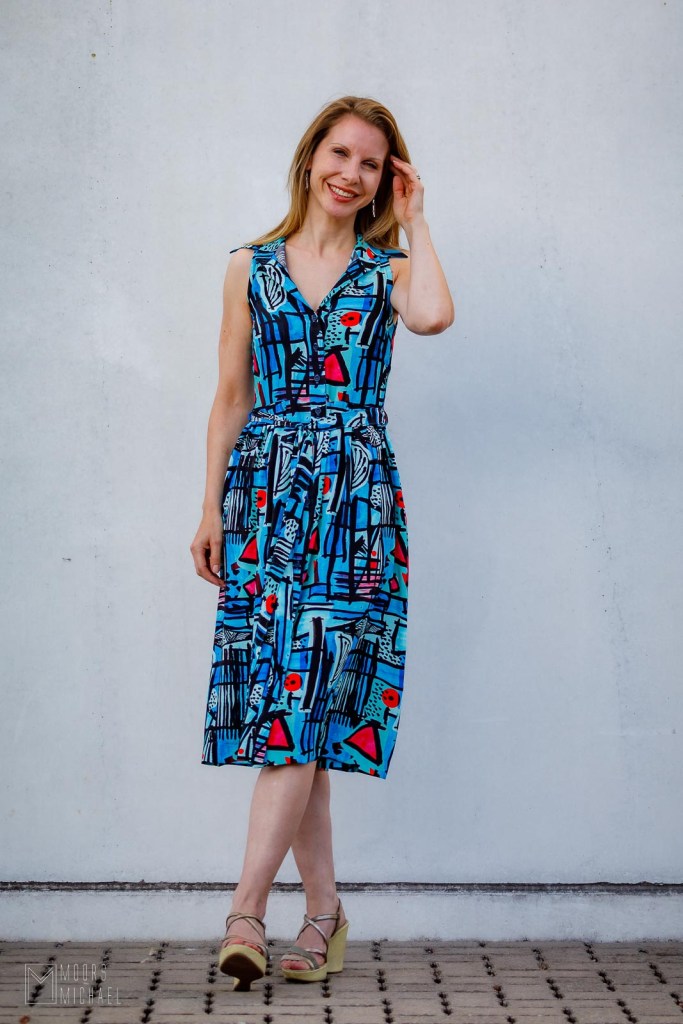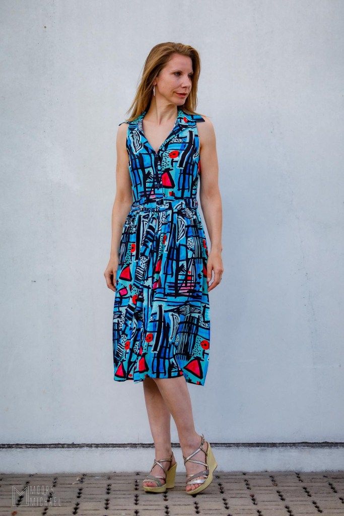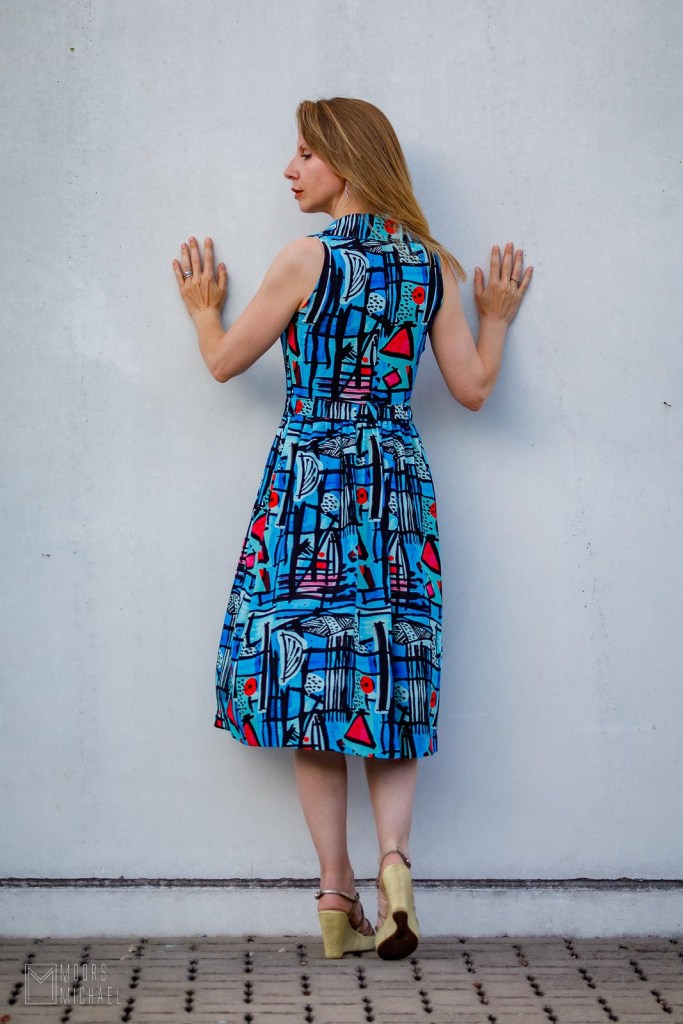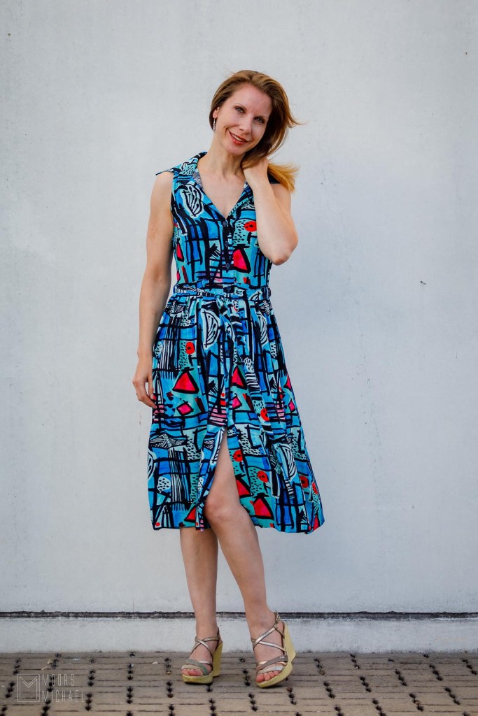 De aandachtige kijker heeft ook opgemerkt dat ik de ruffle niet maakte. Ik vond de stof al druk genoeg en dacht dat die geen extraatjes meer nodig had. Aan het einde van de rit ben ik superblij met mijn jurk. Ze is anders dan elk ander stuk in mijn kleerkast en al heb ik een beetje schroom, ik zal ze deze nazomer zeker nog vaak dragen want ik word er blij en vrolijk van.
