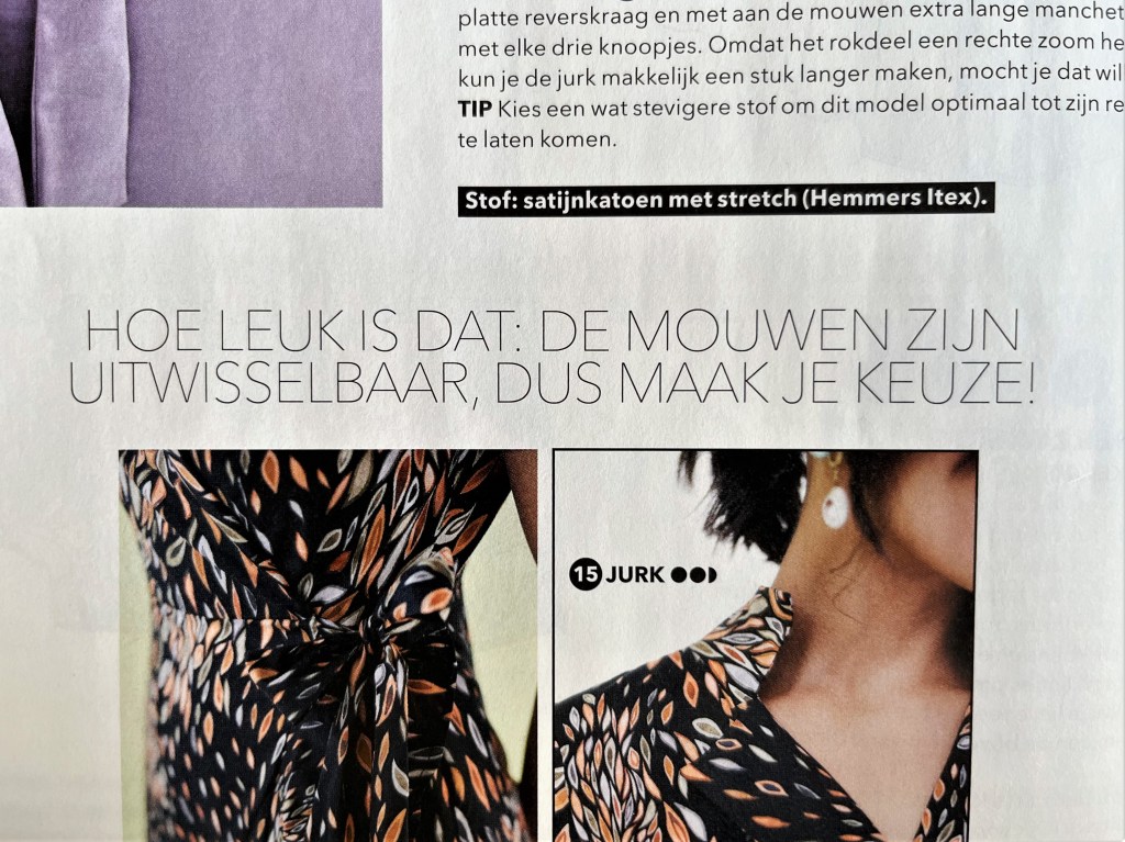 Ook tof in het magazine: je ziet hetzelfde kledingstuk vaak in verschillende variaties passeren op de foto’s, in andere stoffen of maten, waardoor je meer inspiratie krijgt. Maar je vindt er ook jurken waarbij de mouwen of de rok uitwisselbaar zijn, jasjes waarbij je kan variëren in kraag, mouwen, zakken… Heerlijk vind ik het om met dezelfde basis patroondelen een hele resem stuks te kunnen maken in andere stoffen en met andere details. Zo maakte ik onlangs een jasje uit Knip 8/22, waarbij ik zowat alles zelf samen kon puzzelen. Ik ben nu al aan het fantaseren hoe mijn volgende jasje eruit kan zien.