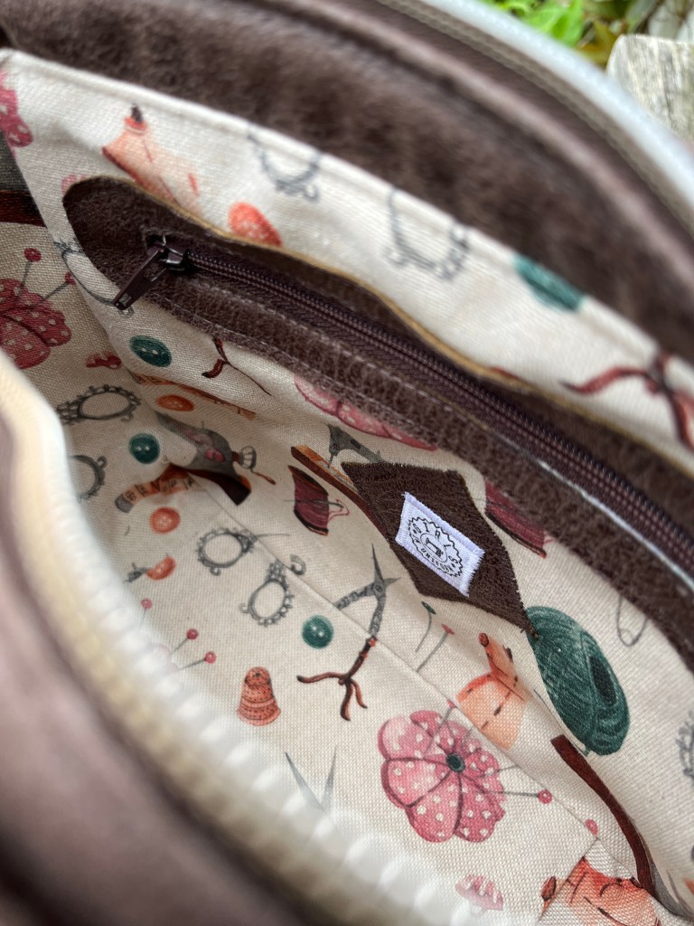 Zoals we het gewend zijn van Kaur Threads, zit het patroon weer ingenieus in elkaar. Al heb ik intussen wel wat tassenervaring, ik leerde toch weer een nieuwe techniek om de rits bovenaan in te zetten. De tassen van Kaur Threads bulken van de leuke details, zoals de manier waarop Sandeep het ritsvak in de voering afwerkt, of het steekvak binnenin. Ik vond het ook fijn dat ik weer met rivetten kon werken, want die zorgen voor een professionele afwerking. Ben je bang van rivettenwerk? Geen zorgen, je kan alles ook gewoon vaststikken.