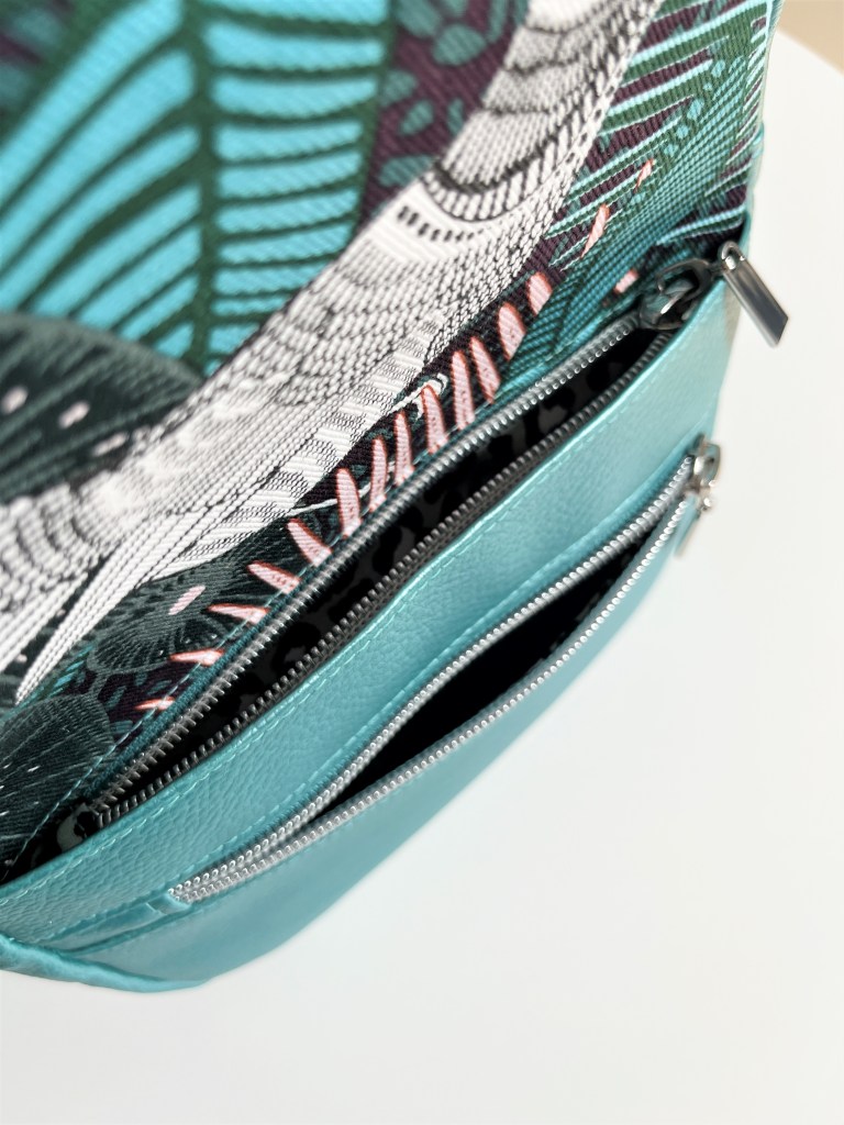 Verder veranderde ik niets aan het patroon van Kaur Threads. Dat zit – zoals we gewend zijn van Sandeep – weer ingenieus in elkaar. Spotte je bijvoorbeeld het leuke zakje in de rug van de tas? Dat was voor mij een openbaring, want deze techniek zag ik nog nergens. Aan de voorkant van de tas vind je dan weer twee ritsvakken, het ene prachtig weggewerkt achter het andere. De tas zit supertof in elkaar en is een plezier om te maken.