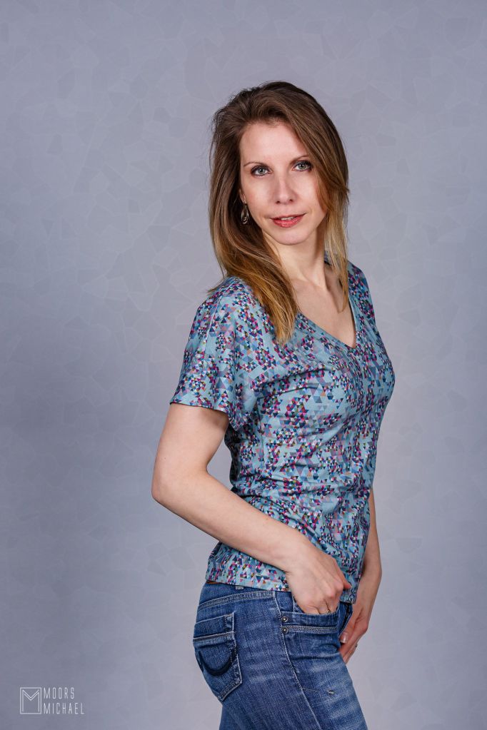 In het FibreMood 5 van 2019 stond een t-shirt met een elegante V-hals en aangeknipte mouwtjes dat meteen mijn aandacht trok. Na mijn eerste versie stond het al vast dat dit leuke modelletje af en toe de revue zou passeren. Want, al probeer ik graag nieuwe dingen uit, ik heb toch een paar all time favourites die geregeld terugkomen. Zo ook de Vita!