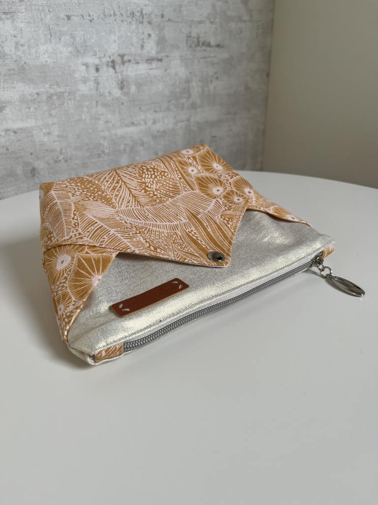 Een tweede APEX Pouch (In Complete Stitches) rolde onder mijn naaimachine uit. Ook voor haar gebruikte ik dezelfde stoffen als bij haar afscheidscadeautje. Toen maakte ik een Vicky toilettas van Pattydoo. Deze leuke APEX is de perfecte aanvulling daarbij. Ik gebruikte een allerlaaste stukje gekoesterde See You at Six canvas uit mijn voorraad en combineerde het met een gecoate goud-beige katoen. De voering is een restje van een tafelkleed dat ik maakte voor mijn schoonmoeder.