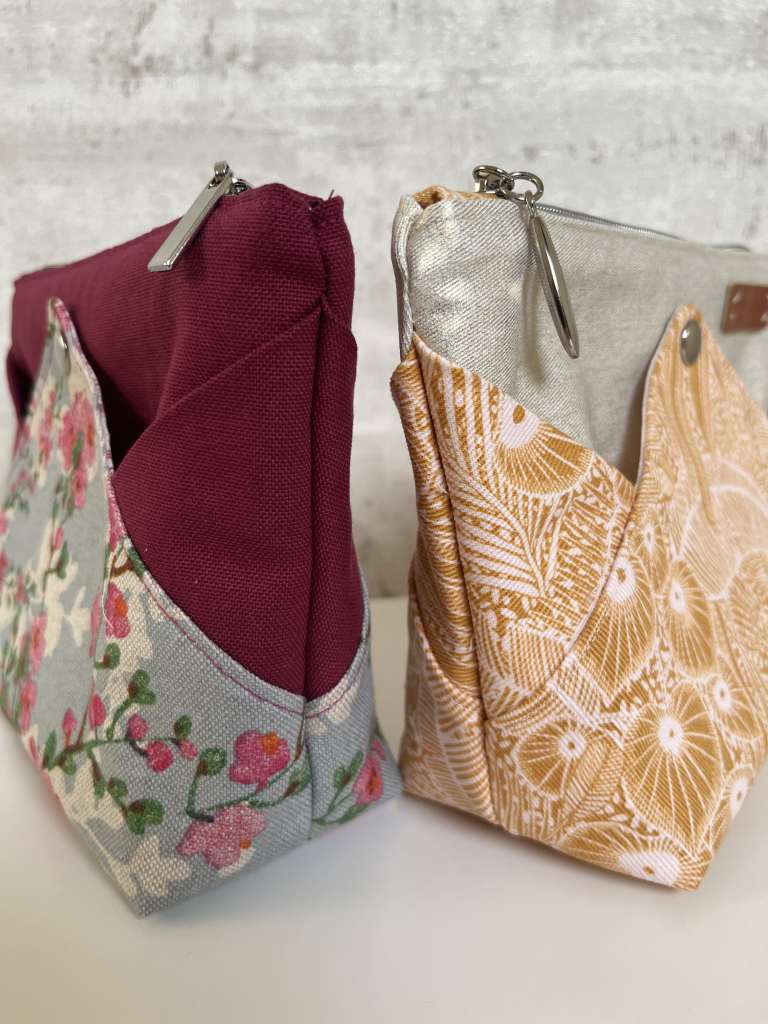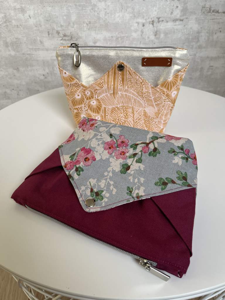 De ritsen en mooie trekkers komen voor beide tasjes van ZipperZoo. De versteviging is er eentje van Serial Bagmakers. Om de drukknopen te plaatsen gebruikte ik mijn pers, een cadeautje voor mezelf, gekocht bij Serial Bagmakers, waar ik sinds de aankoop met volle teugen van geniet.
