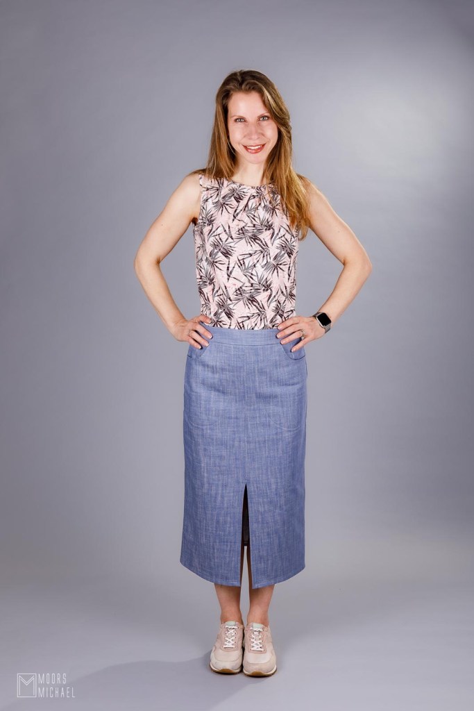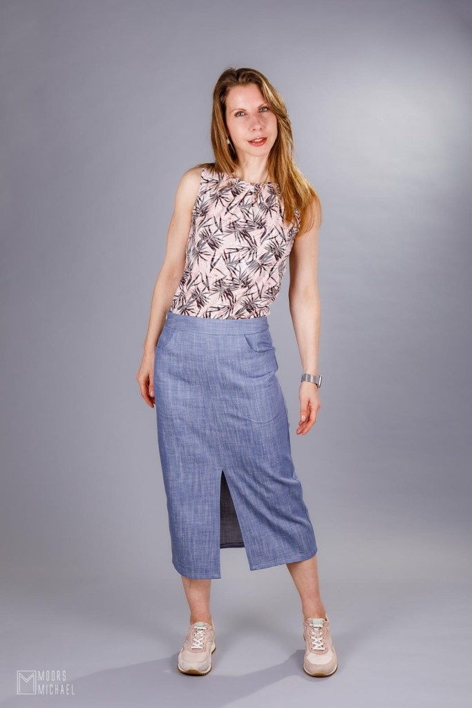 Ik combineerde de rok met de Camellia top van Sola Patterns, die je al verschillende malen zag passeren op de blog. Weet je dat ik zelfs een versie liggen heb die jullie nog niet gezien hebben? Het is met vlag en wimpel mijn favoriete zomerse patroon voor een top. Jammer genoeg bestaat Sola Patterns intussen niet meer, want ze hebben een aantal hele mooie patronen ontworpen. Het lijkt mij een hele competitieve wereld, die van patroondesigners.