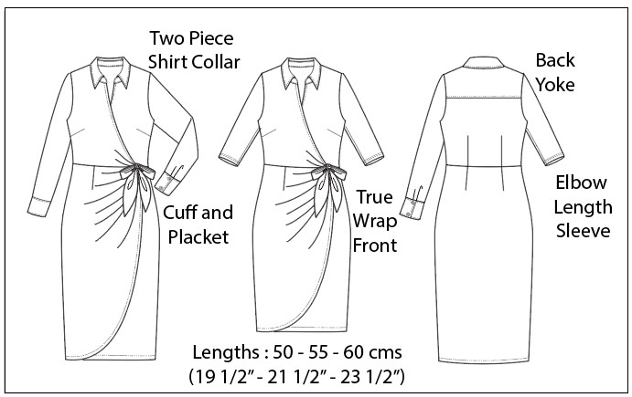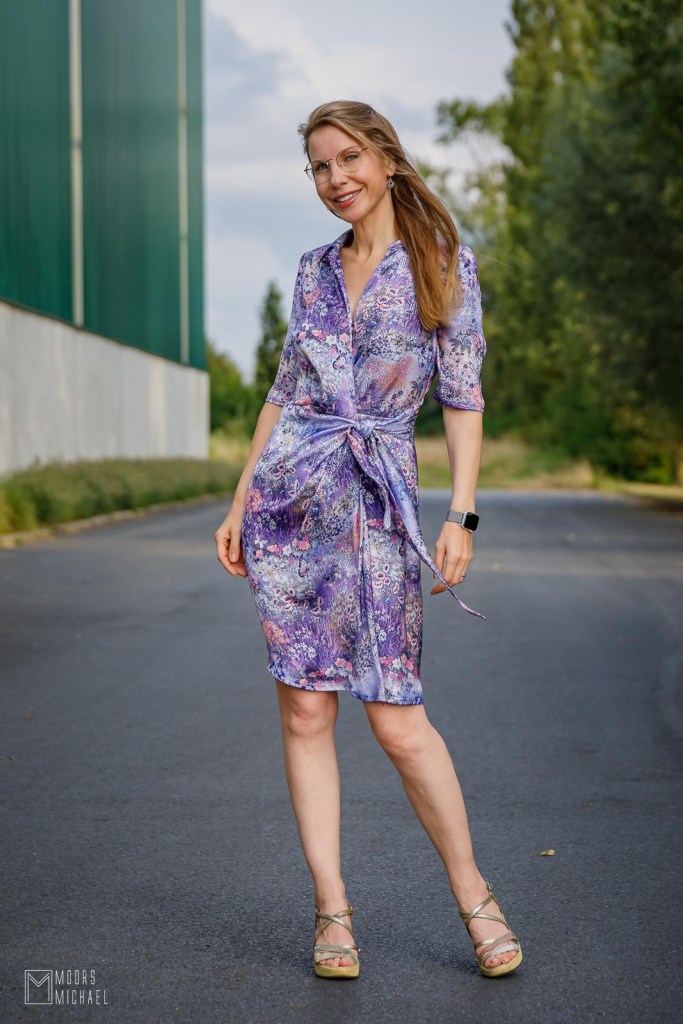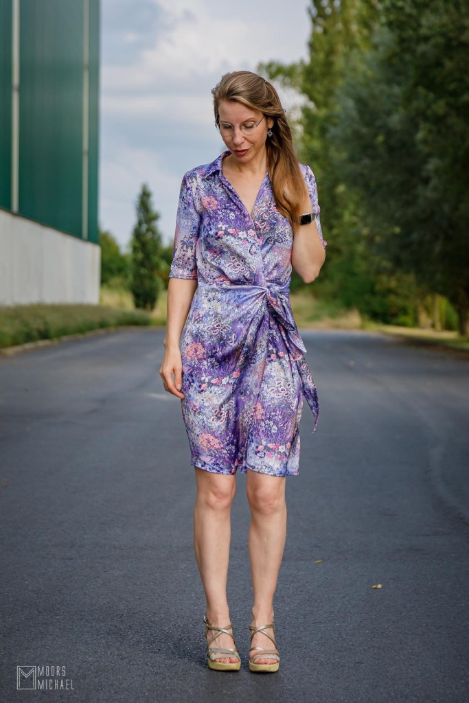 De Milla is een echte wrap dress, wat ze al bij voorbaat ongeschikt maakt om te fietsen, jammer maar helaas. Je kan ze in verschillende versies maken, ik koos voor de rok van 55 centimeter, waardoor de jurk net boven de knie komt. Je kan de rok ook korter of langer maken. Daarnaast koos ik voor een zomers kort mouwtje op elleboog-lengte, maar de jurk is ook prachtig met lange mouwen, inclusief manchetten.