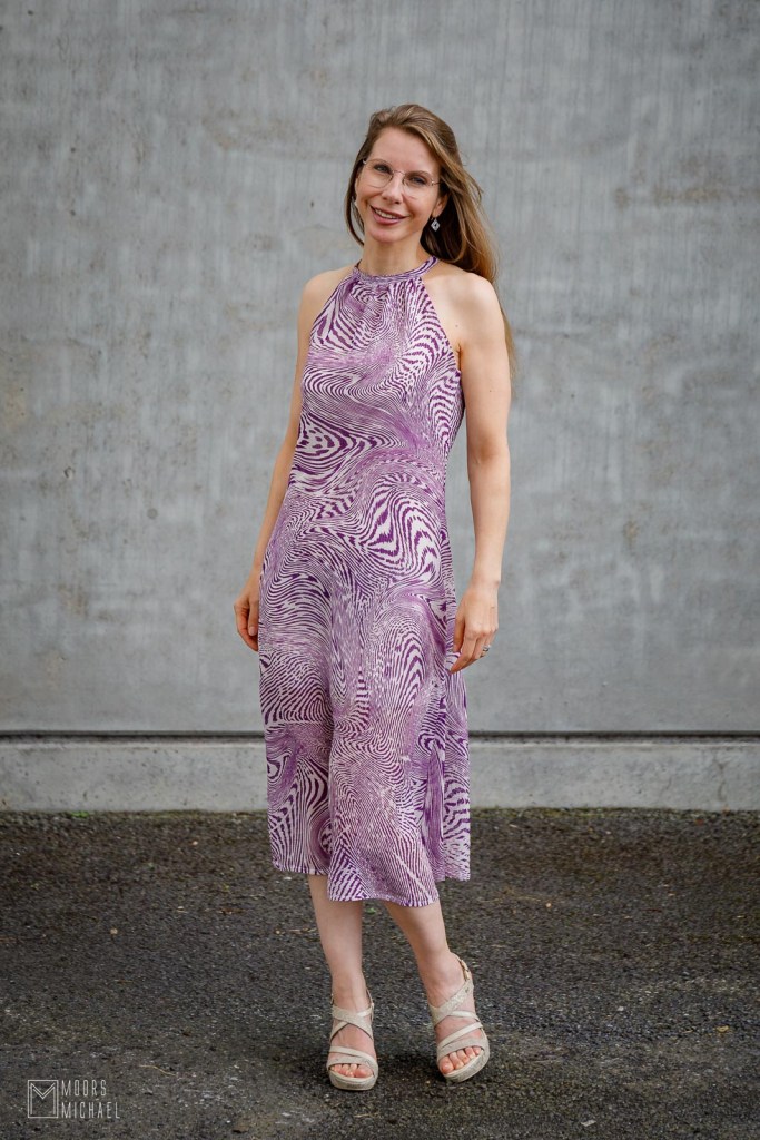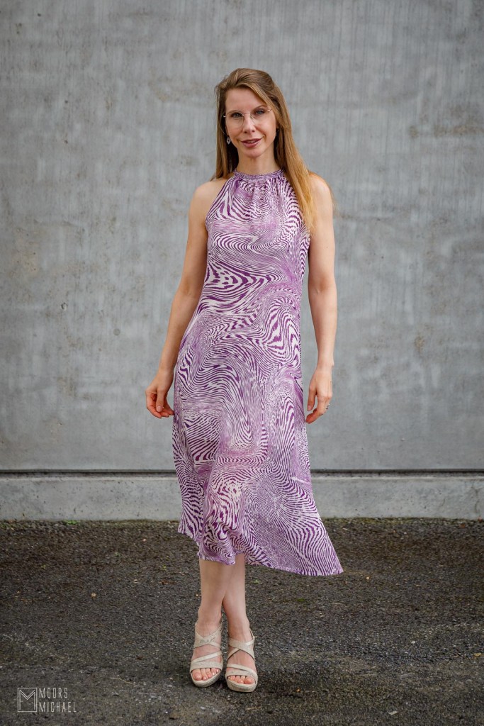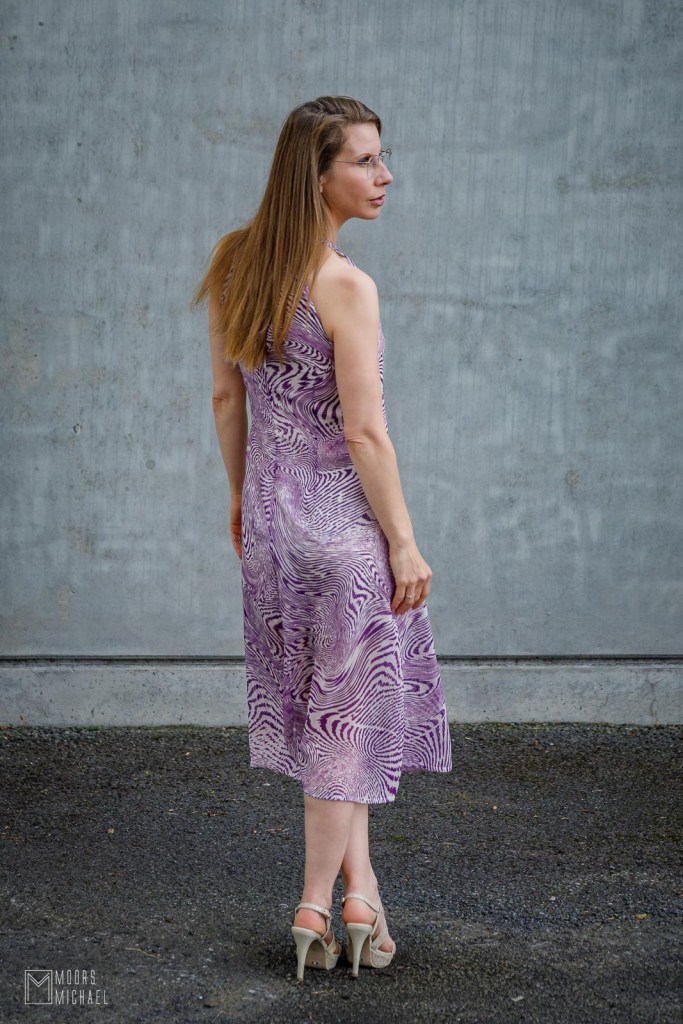 In Burda Classics herfst/winter 2013/214 vond ik een prachtige halterjurk in twee lengtes. Voor mezelf maakte ik een korte versie en een paar jaar later volgde een lange voor een vriendin. Mijn minijurk behoort intussen ook tot het verleden, dus het was hoog tijd dat ik het patroon nog eens van onder het stof haalde.