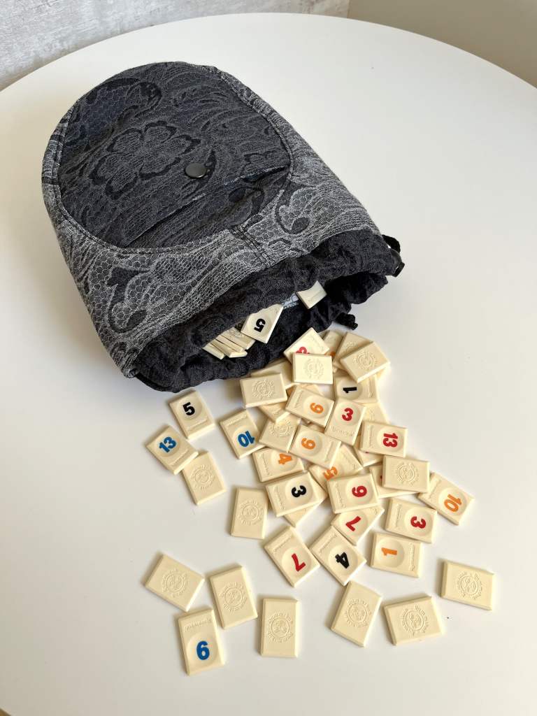 De kleinste van de twee maakte ik heel eenvoudig, zonder opties. Het formaat is super handig om mijn naaiclips in te bewaren. In één van de kanten van de small maakte ik een steekvak met drukknop. Geen idee of die ooit van pas gaat komen, maar ik vind het hoedanook een leuk accent. Deze ga ik gebruiken voor mijn ‘reis Rumicub’ spel.