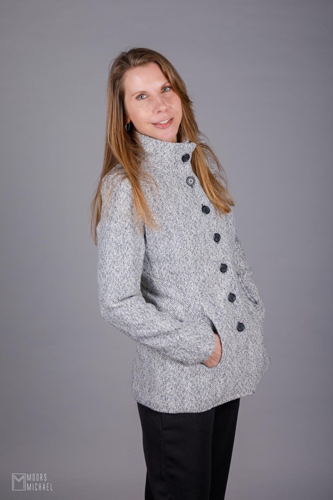 Tot mijn grote opluchting maakten de niet-perfecte knoopsgaten de jas niet ondraagbaar, want ik vind het einderesultaat supertof. Dit is een jas die ik volgende lente en de komende jaren met veel plezier zal dragen. Het enige nadeel voor ‘gevoelige trezekes‘ als ik: de mantelstof prikt een beetje aan de hals. Zonder sjaal of rolkraag al ik hem dus niet volledig dichtgeknoopt dragen. Gelukkig is het jasje ook leuk als je het open of halfopen draagt!