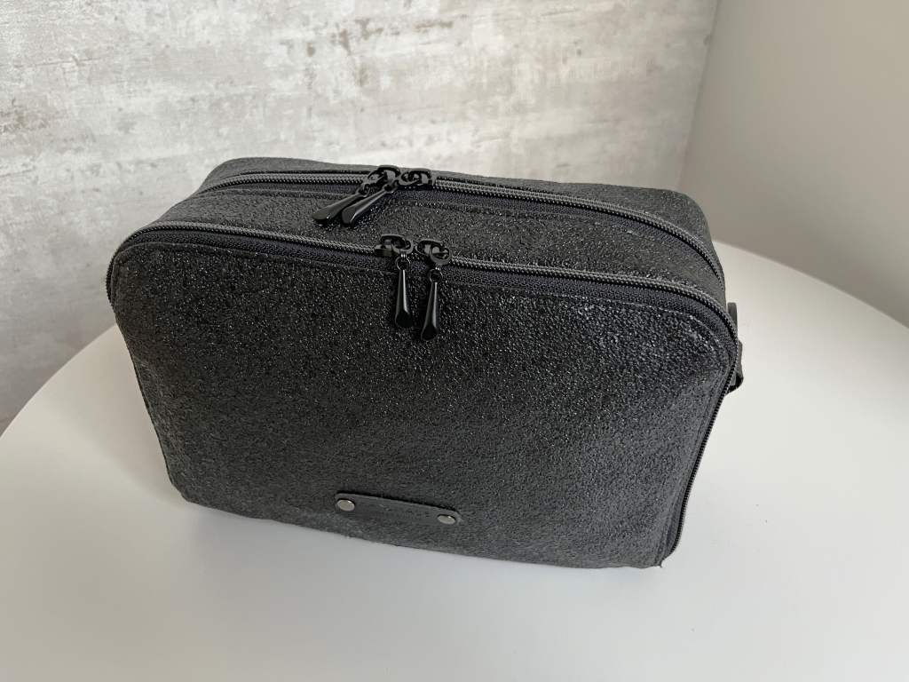Eind februari deed ze eindelijk een testersoproep en konden we aan de slag. Al heb ik intussen een immense voorraad, toch was het moeilijk om de perfecte combinatie te vinden. In eerste instantie wilde ik niet opnieuw voor zwart gaan, want donkere tassen heb ik al veel. Maar omdat ik per sé uit mijn voorraad wilde werken, was de combinatiekeuze beperkt. Ik zwichtte voor een tof zwart kunstleer met korrelstructuur. Geen enkel idee waar ik dat ooit kocht…