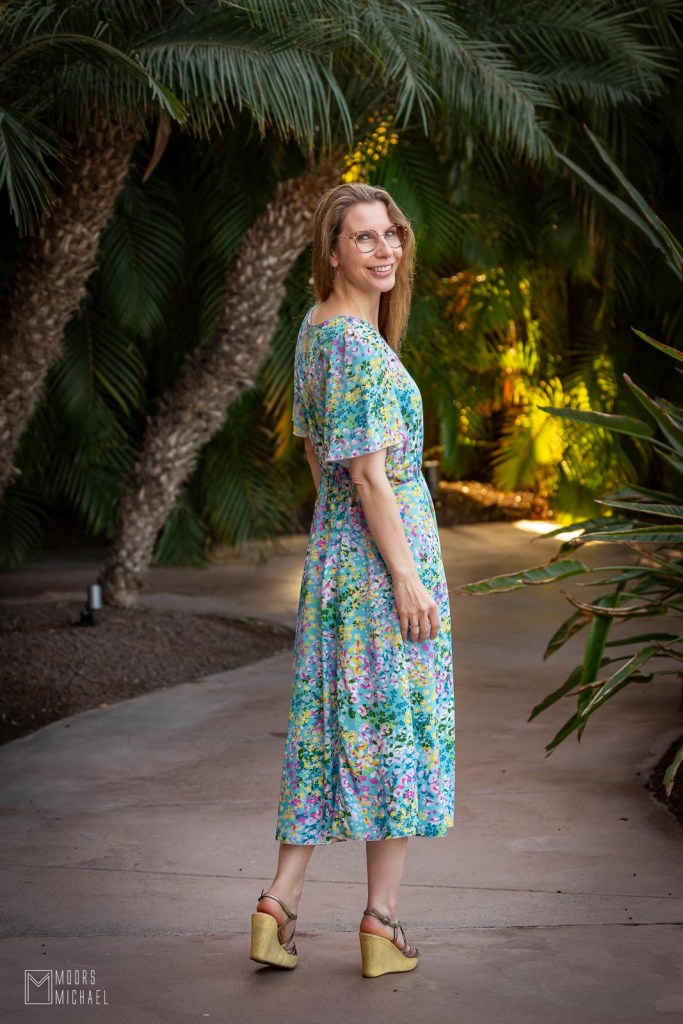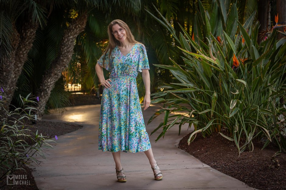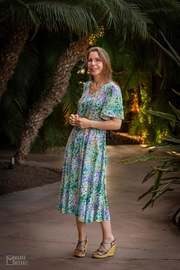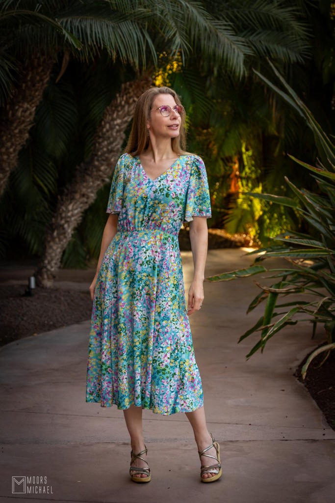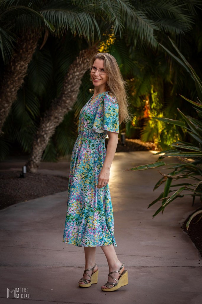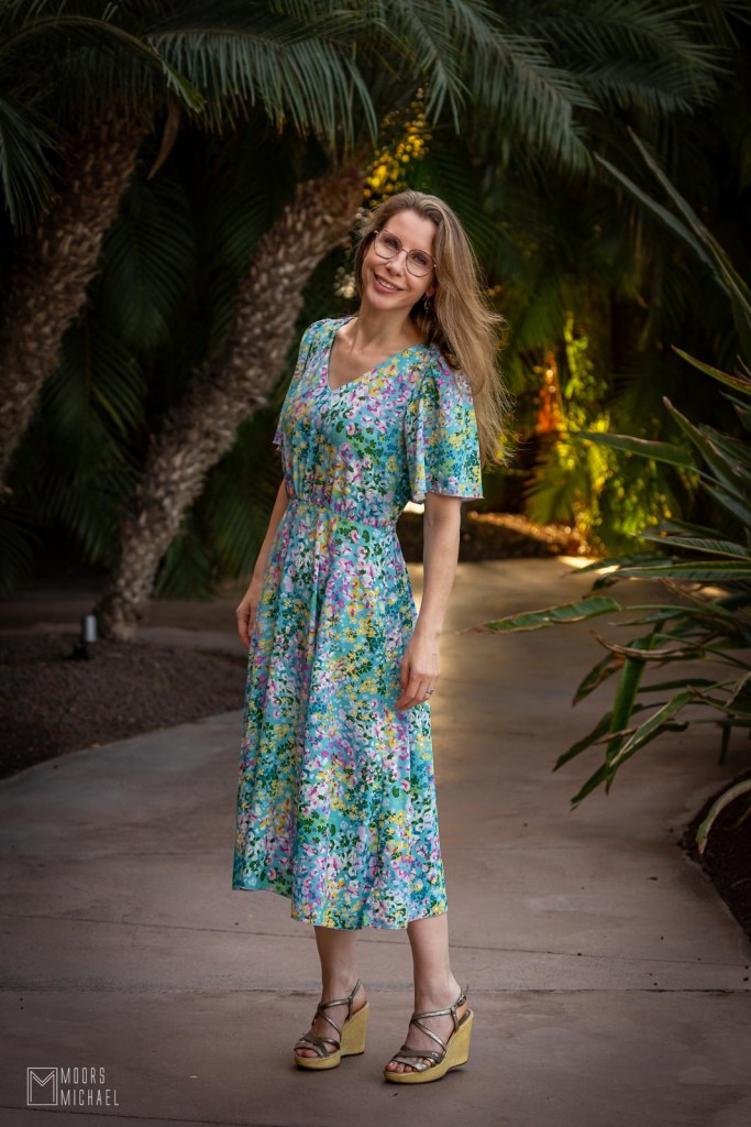 Ook de jurk zit goed in elkaar. De constructie van de rok met panelen zorgt voor een perfecte pasvorm zonder overtollig volume en dankzij de elastiek in het rugpand is een rits bij deze jurk overbodig. De Cuba Libre-jurk is gemakkelijk te naaien en heerlijk om te dragen. We gingen in de herfst van ’25 op reis naar Gran Canaria en ik kan mij geen fijnere jurk indenken voor onze vakanties. Met mooie vlindermouwen, V-hals en zwierige lange rok is de Cuba Libre onweerstaanbaar elegant!