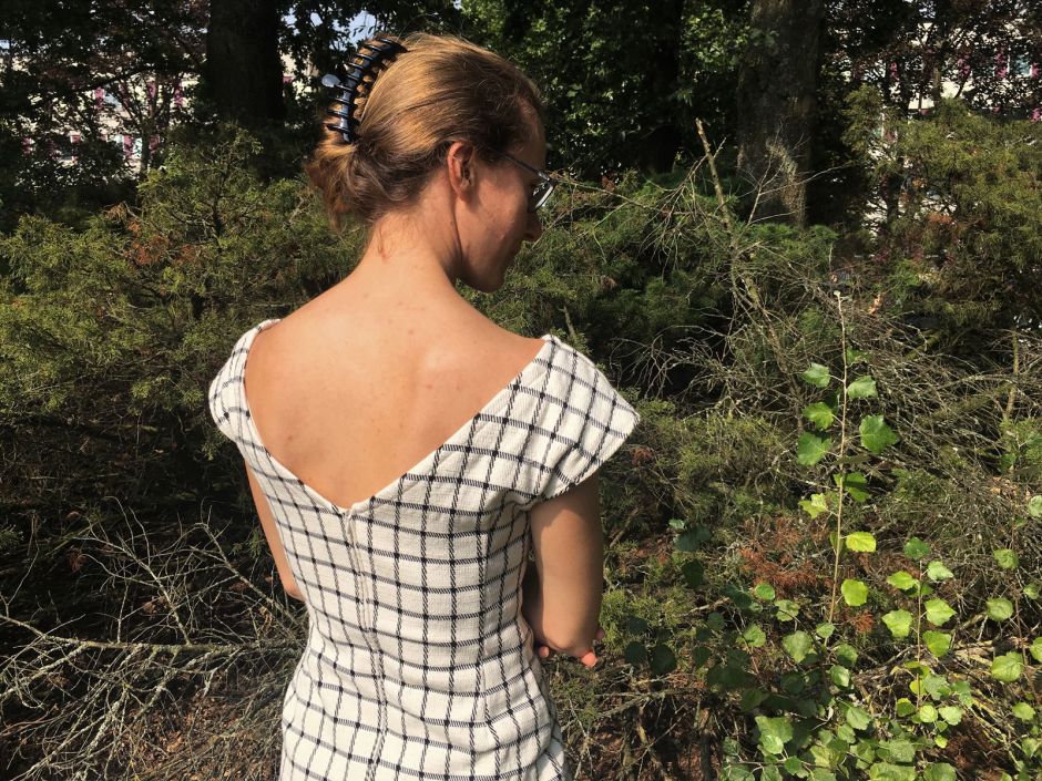 De rits er inzetten bleek weer moeilijker. Blinde ritsen zijn nooit mijn vrienden geweest; ik slaag er nog steeds niet in die in één keer goed te stikken. Nu moest ik niet alleen zorgen dat die rits goed zat, maar ook dat de print van beide rugpanden mooi doorliep. Stress…