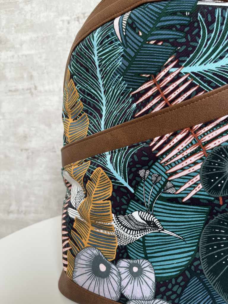 Uit al ‘mijn’ rugzakpatronen mocht Elke kiezen welke ze het leukste vond. Ze koos resoluut voor de Roana van Hansedelli. De versie die ik eerder maakte vond ze heel leuk, maar qua kunstleer wilde ze graag iets anders. Mensen die mij kennen, weten dat ik niet graag naai in ‘kakkleuren’, maar voor mijn zusje maakte ik graag een uitzondering.