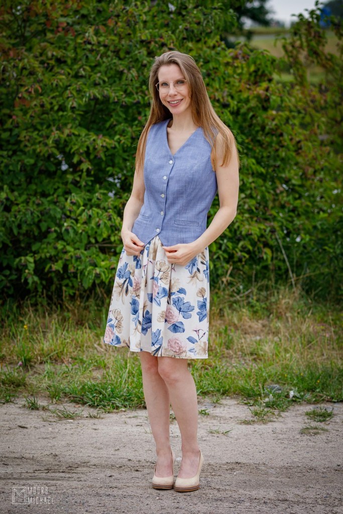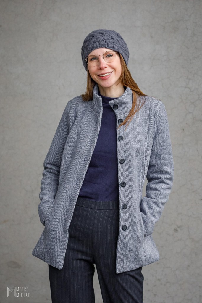 Designer Ann van Designer Stitch sprong meteen op de kar met haar veelzijdig Pia vest. Het gilet kan je in verschillende versies maken: met een hoge of diepe V-hals, met een schuin voorpand inclusief knopenrij, of met een schuin voorpand dat je met een elegante strik vastknoopt. Opnieuw voor elk wat wils! Ik ging voor een ‘veilige’ optie en koos voor de klassieke versie met hoge V-hals.
