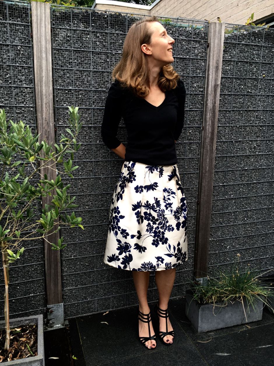 De rits er inzetten bleek weer moeilijker. Blinde ritsen zijn nooit mijn vrienden geweest; ik slaag er nog steeds niet in die in één keer goed te stikken. Nu moest ik niet alleen zorgen dat die rits goed zat, maar ook dat de print van beide rugpanden mooi doorliep. Stress…