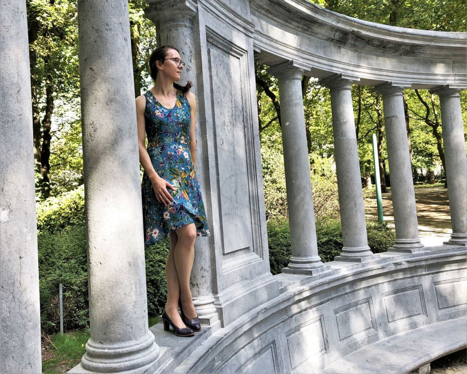 Het resultaat is een vrolijke Flo, een jurkje dat je in warme zomermaanden draagt om naar een feestje te gaan of in de stad te gaan flaneren. Ik deed het laatste met Lieve tijdens een fotoshoot in Mechelen en kreeg er fijne complimentjes over.