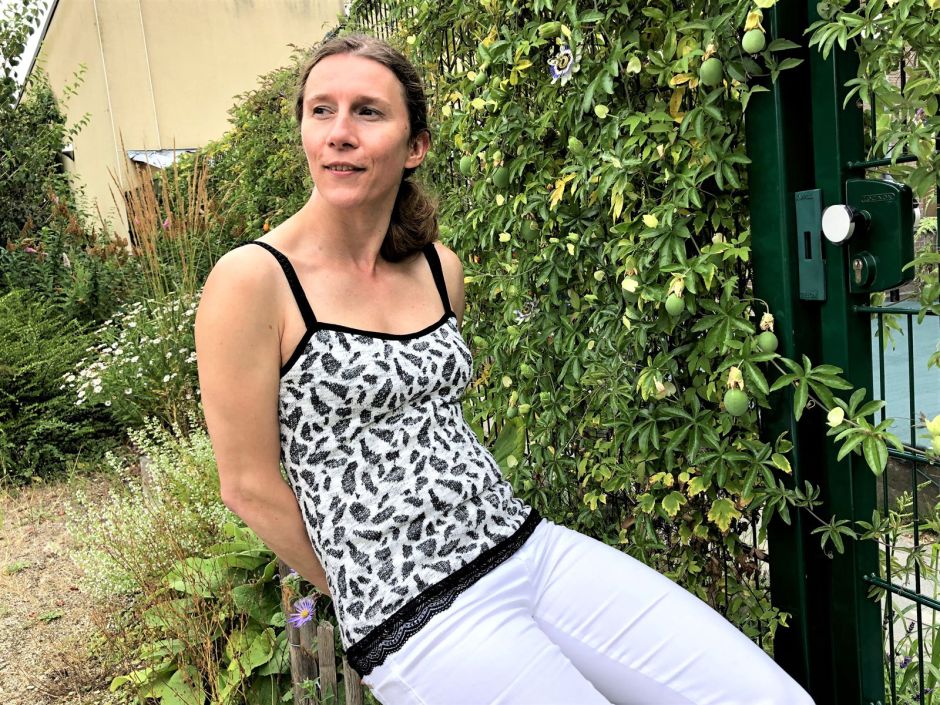 Ik hou ook wel van iets anders. De topjes die je nu ziet in de winkels vind ik allemaal wat dezelfde en eerlijk gezegd… saai. Ik was op zoek naar een topje met eens iets anders. Een leuke detail op de rug bijvoorbeeld. Dat is net het leuke als je dingen zelf kan maken: je vindt je zin niet in de winkel? Dan naai je het gewoon zelf.